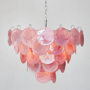 Murano Chandelier 57 Pink. 57 Pink alabaster iridescent glass disks. This chandelier is more than just a lighting fixture, it's a work of art that illuminates your surroundings.