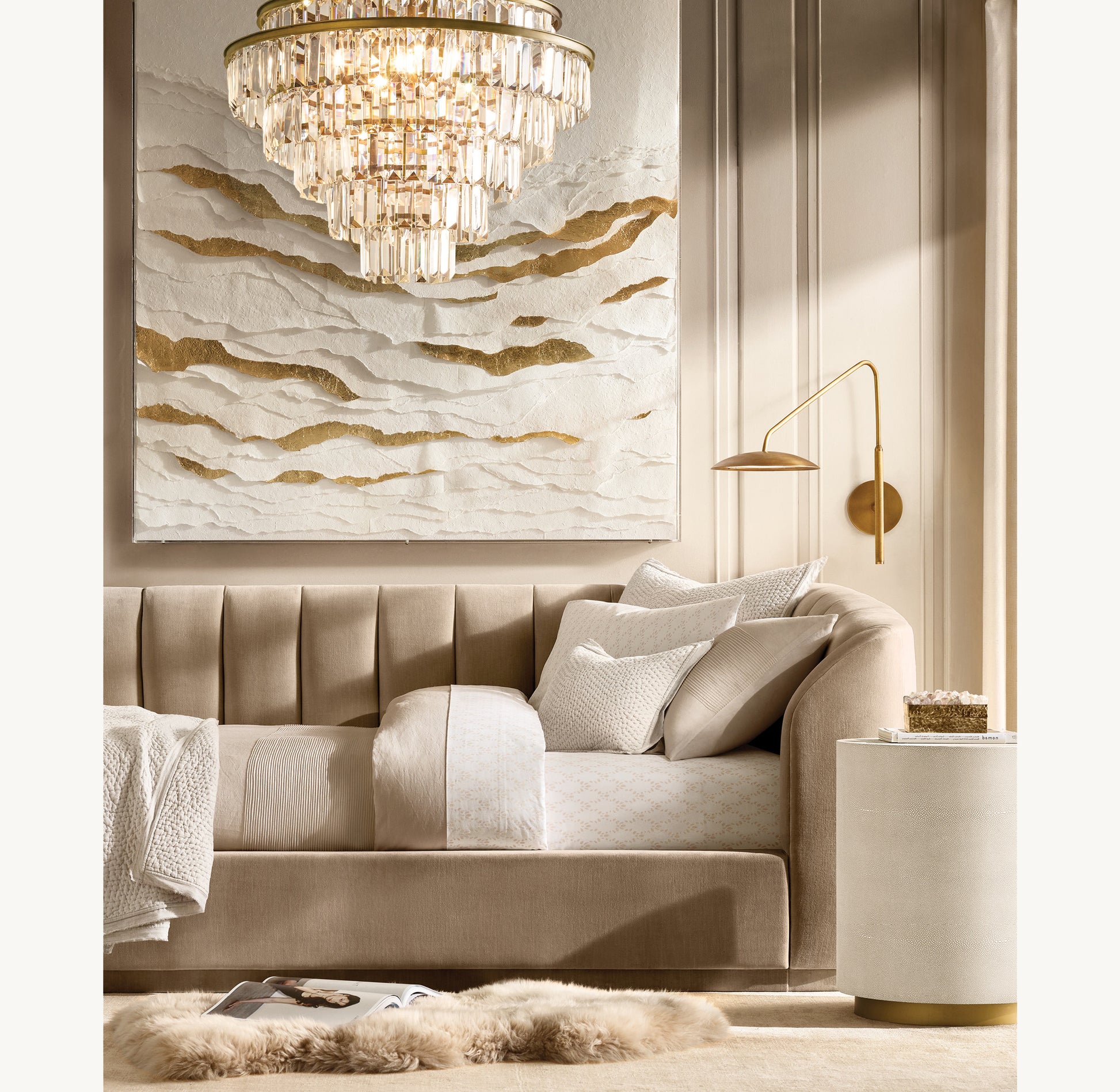 - Features graduated tiers of rectangular cut crystals