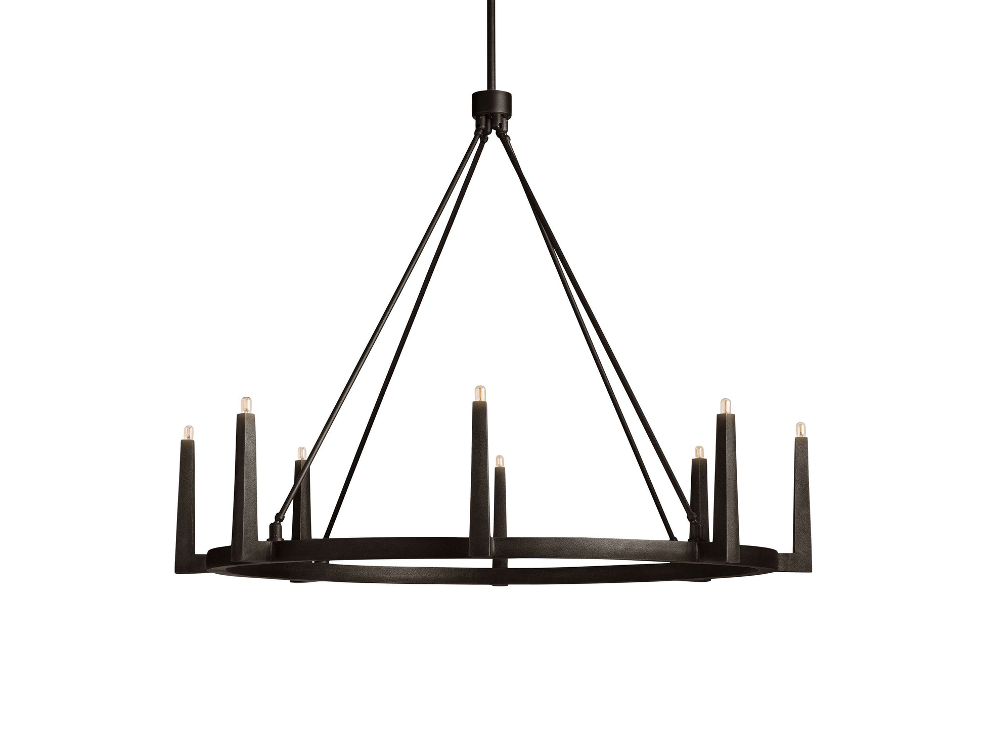 - 54" chandelier uses eight 40-watt-max E12 bulbs (Included).