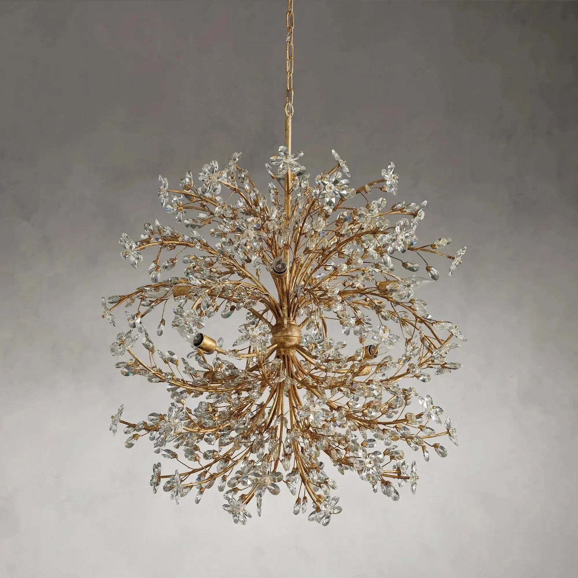 Luxurious crystal florals and drops illuminate each branch-like form of our elegant Fiore Lighting Collection. Crafted by our artisan partners from Italy from solid iron and hand-finished with silver or gold leaf, each piece is inspired by the beauty of nature and celebrates premium craftsmanship. Fiore will become a showstopper from dining room to entryway, adding glamour to any space.