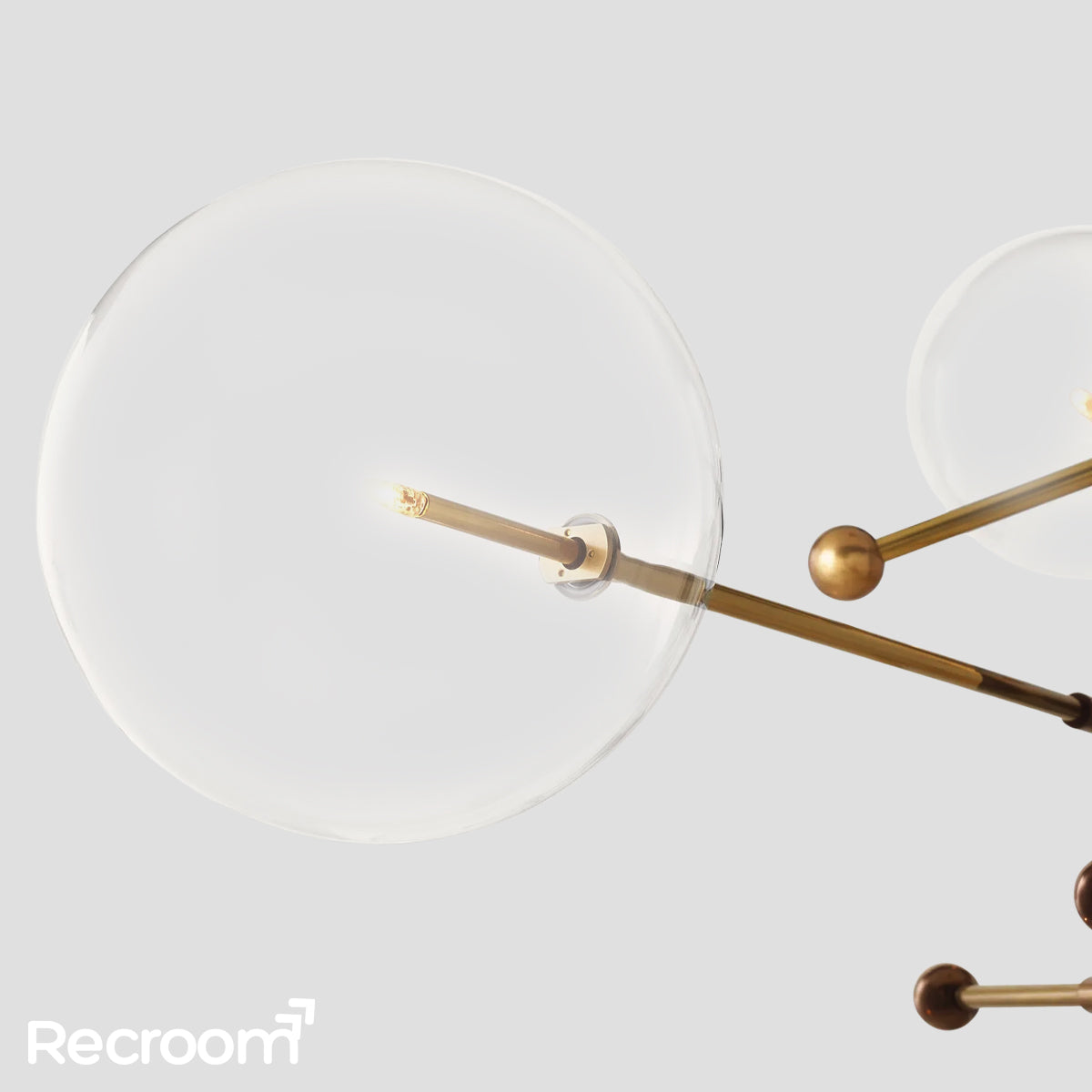 Delicate, handblown glass global float like orbs at the ends of solid brass rods in our collection. Crafted in Poland by master glassmakers, each fixture conveys fluidity and motion yet is anchored in the pure modern architecture of its form.
