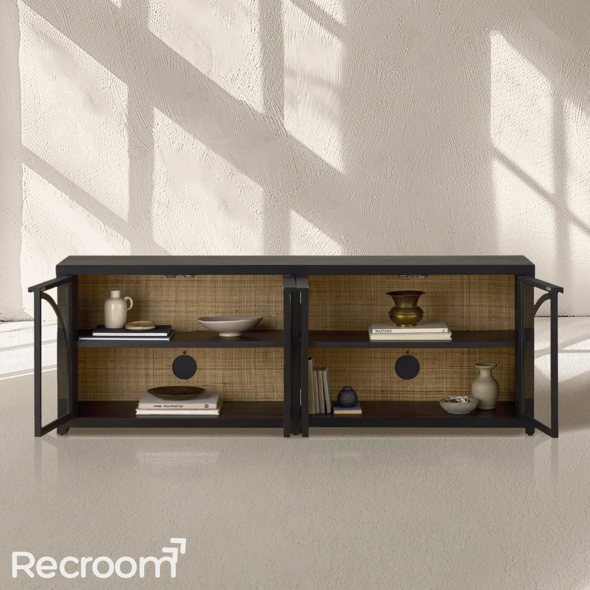 With its refined cane paneling and artisanal craftsmanship, this elegant cabinet weaves organic texture into your space, creating a display that feels both curated and effortlessly warm. The natural woven detailing adds depth and lightness, while the sturdy wood frame provides a timeless backdrop for your favorite books and cherished objects. Thoughtfully designed with adjustable shelves and discreet storage, it balances airy openness with functional sophistication—perfect for those who appreciate understated luxury with a touch of artisanal character.